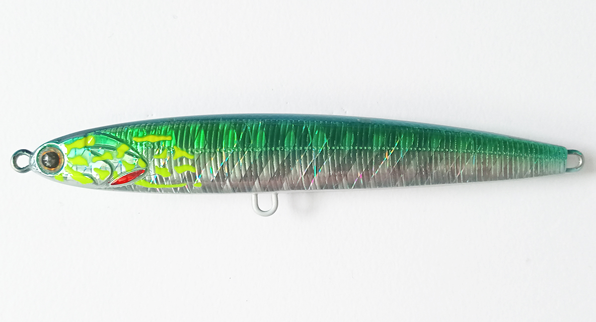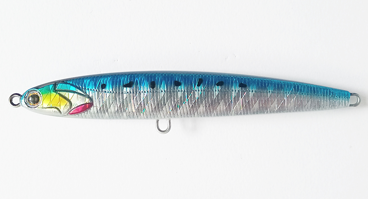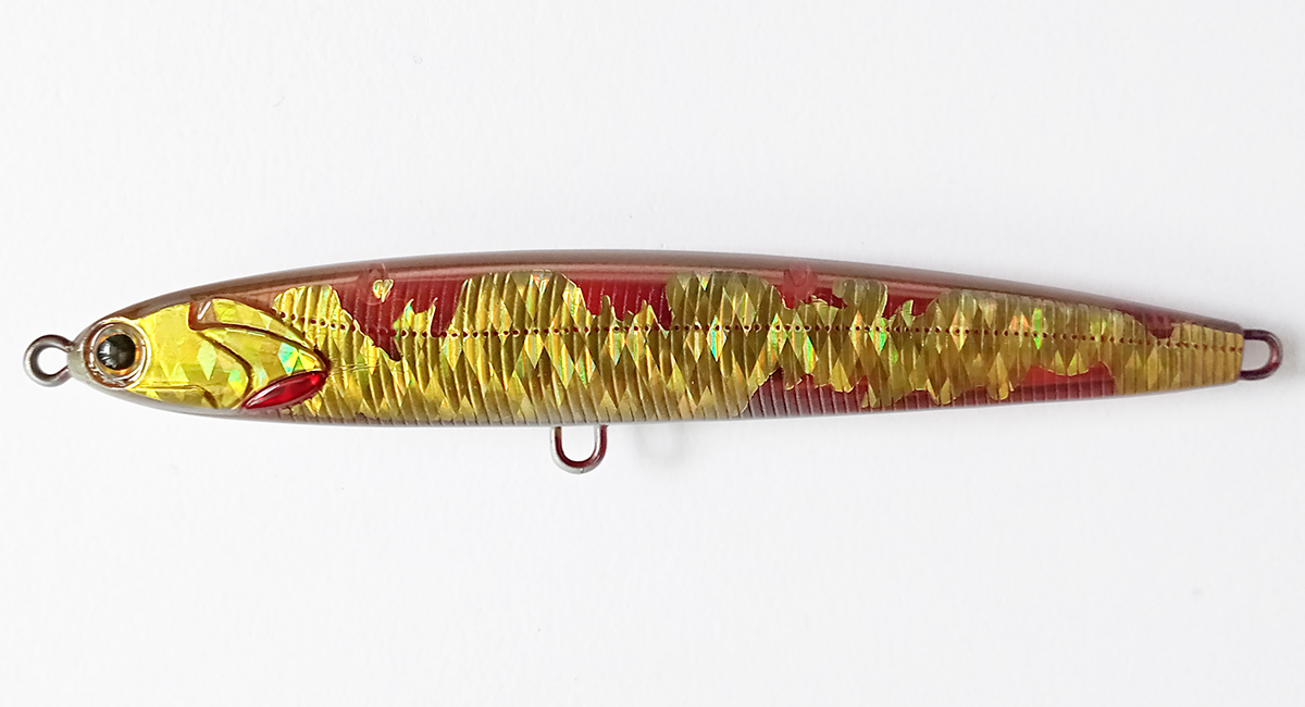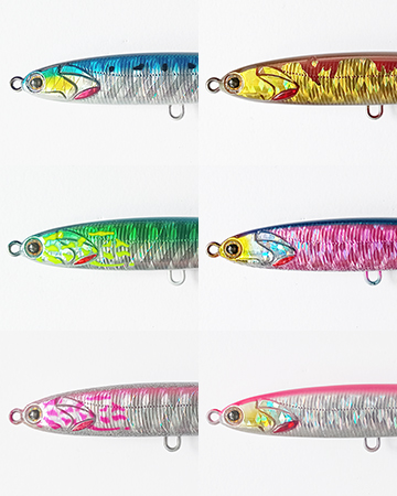 PE3〜6号クラスのタックルでも扱えるモデルで、フォールでは水平フォールで瀕死のベイトを演じ、海面を滑走させるただ巻きでは、左右へ逃げ惑う動きでアピール。