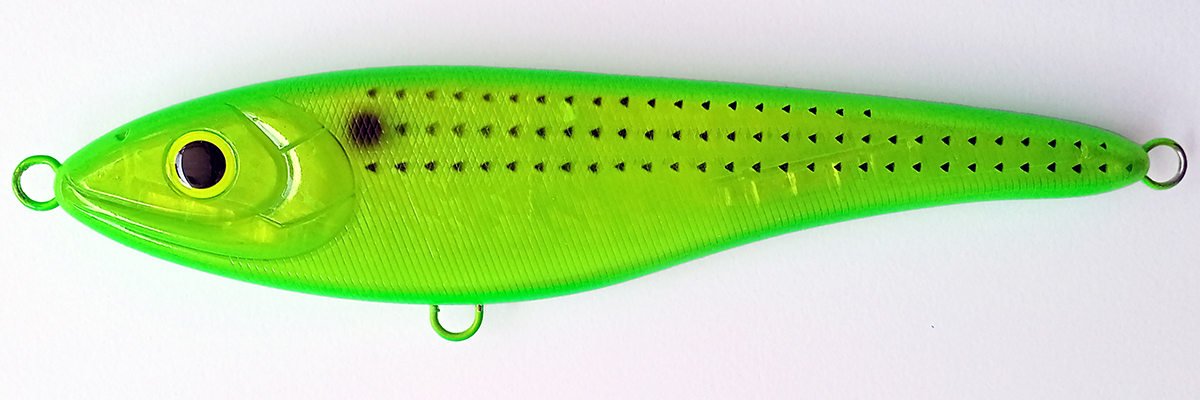 2.強めなジャーク⇒ 水面直下で左右に幅ある平打ちダートアクション